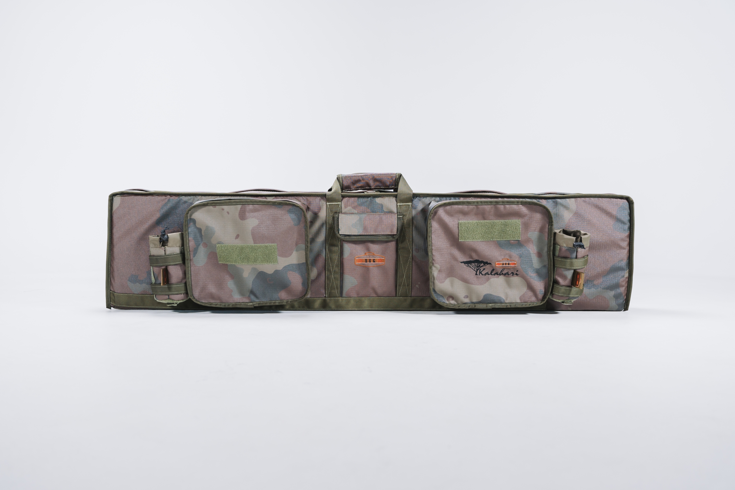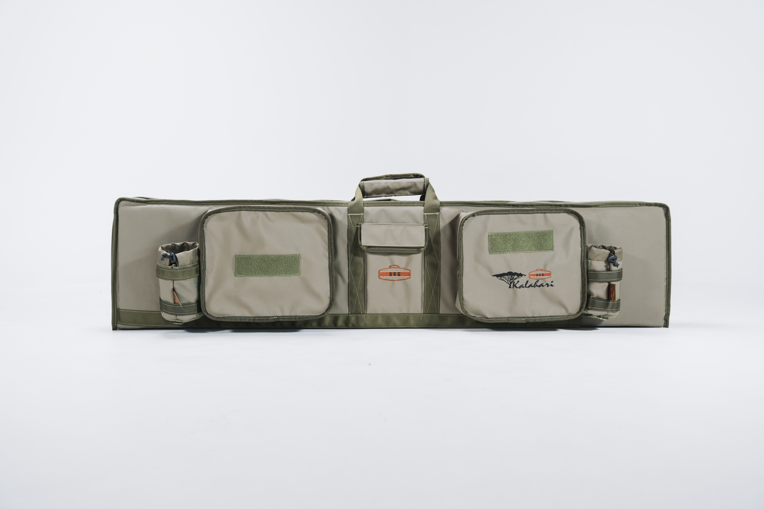 Keep your complete shooting kit safe, clean, and out of harms way with our Kalahari edition Double Semi Hard Case. Six ultra-strong military grade pebble-weaved-webbing straps easily secures the case to cattle-or-hunting rails.